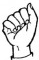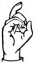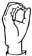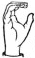 На ћирилици написано САНДРА БЕТЕГАЛО састоји се из 14 слова [?]. Исписано ћириличном једноручном азбуком за глувонеме: